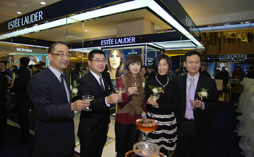 各位領(lǐng)導(dǎo)共同舉杯慶賀雅詩(shī)蘭黛蘭州國(guó)芳百貨專柜開(kāi)業(yè)成功
