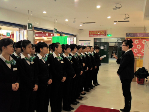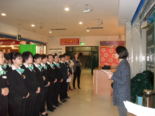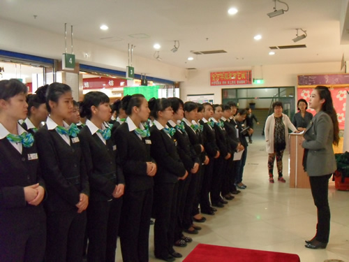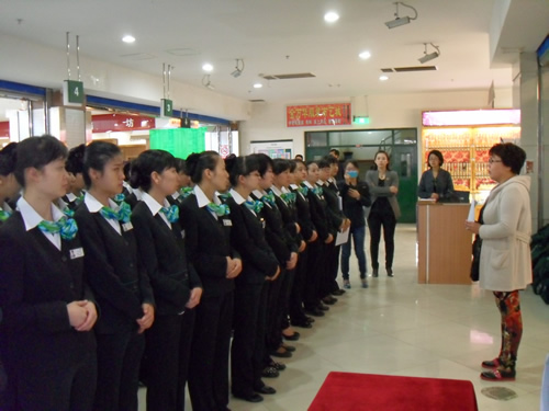 2013年4月9日是一個普通的工作日,但卻是國芳集團(tuán)收銀部崗位技能管理水平提升和發(fā)展歷程上非常重要的一天,因為今天國芳集團(tuán)零售板塊蘭州地區(qū)收銀員職業(yè)技能評定工作正式拉開帷幕。早上8點整,在蘭州國芳綜超廣場店正式召開了本次活動的動員會,動員會由收銀部經(jīng)理韓曉麗女士主持,蒞臨現(xiàn)場的公司領(lǐng)導(dǎo)有集團(tuán)總裁助理、財務(wù)總監(jiān)余麗華女士,集團(tuán)總裁助理、人力資源總監(jiān)孟麗女士,集團(tuán)培訓(xùn)經(jīng)理、蘭州百貨人力資源經(jīng)理孫曉輝女士,綜超人力資源經(jīng)理馬琳先生。