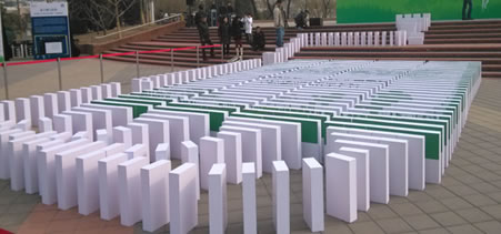 據(jù)了解,此次超長多米諾在蘭州的首秀,緣起于國芳百貨第14周年店慶。屆時(shí),將有包括國芳百貨員工、媒體、以及志愿者在內(nèi)的近1000人參與到此次活動(dòng)中,而多米諾在蘭州的5分鐘華麗綻放,也將拉開蘭州國芳百貨14周年店慶的序幕。