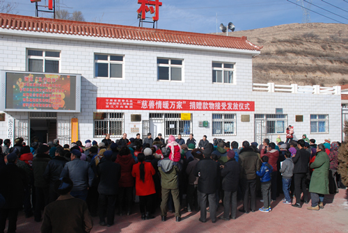 2016年1月21日由甘肅省慈善總會(huì)、甘肅國(guó)芳工貿(mào)集團(tuán)聯(lián)合開(kāi)展的“慈善情暖萬(wàn)家”捐贈(zèng)物資接受發(fā)放儀式在青嵐山鄉(xiāng)大坪村隆重舉行。省慈善總會(huì)常務(wù)副會(huì)長(zhǎng)張瑞堂同志、副會(huì)長(zhǎng)張忠健同志,甘肅國(guó)芳工貿(mào)集團(tuán)副總經(jīng)理白海源先生,定西市政府副市長(zhǎng)李斌同志及市區(qū)民政局、青嵐山鄉(xiāng)政府主要負(fù)責(zé)同志參加了儀式。省慈善總會(huì)聯(lián)合國(guó)芳工貿(mào)集團(tuán)籌措價(jià)值120萬(wàn)元的衣物5100多件,資助青嵐山鄉(xiāng)3000多戶困難群眾,幫助他們解決穿衣方面的困難。