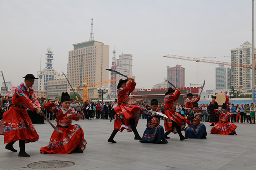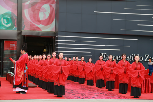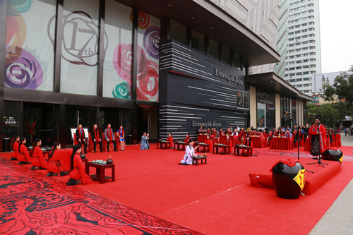 國芳集團(tuán)十七周年司慶大型文化活動(dòng)——漢式迎賓禮于9月3日上午8時(shí)30分,在國芳百貨正西門正式上演。除集團(tuán)各分子公司管理人員外,還邀請了與國芳集團(tuán)合作多年的數(shù)十名供應(yīng)商代表一同出席此活動(dòng)。