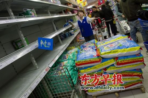 據(jù)上海市商務(wù)委有關(guān)人士透露,由于補(bǔ)貨及時,昨天下午1時后全市各大超市、賣場相關(guān)貨架基本已恢復(fù)正常。